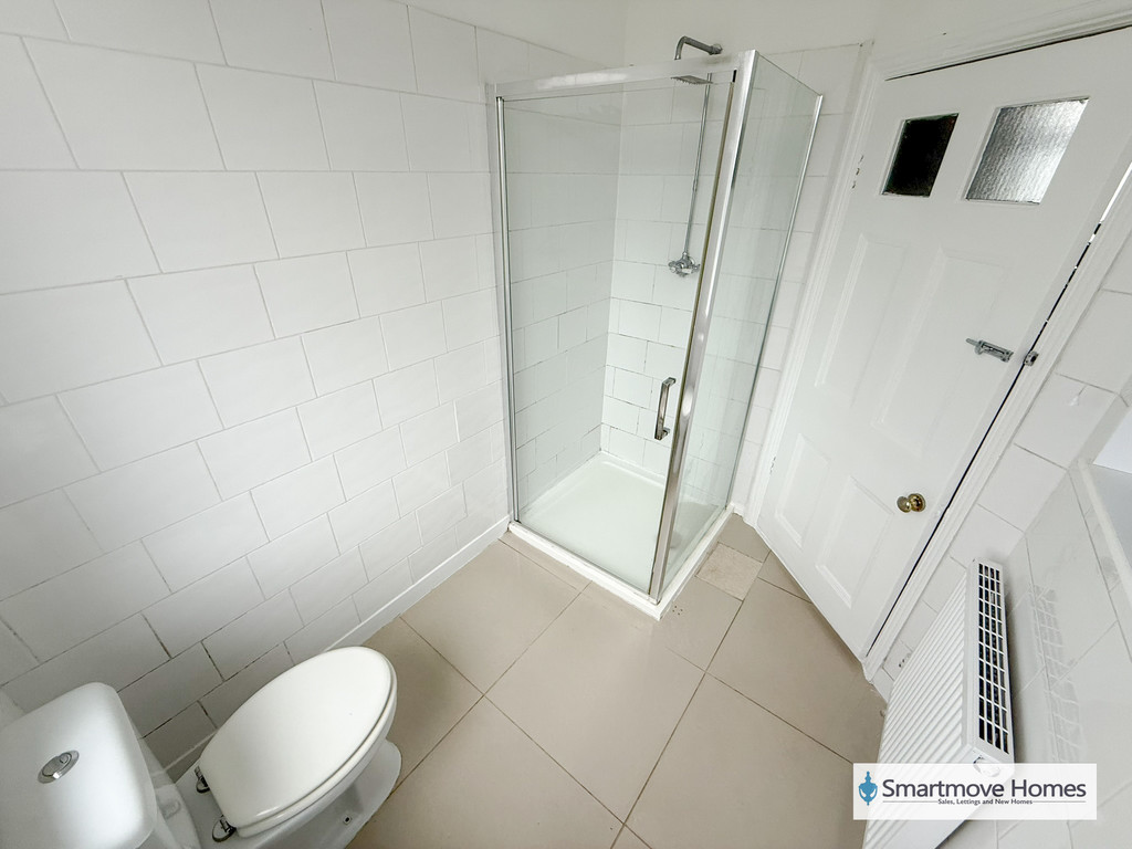 SHOWER ROOM Three piece shower room comprising of a single corner shower with a mains fed shower over, wall mounted wash basin and WC. Obscure window to the rear elevation, extractor fan, half tiled walls, tiled floors and a central heating radiator.