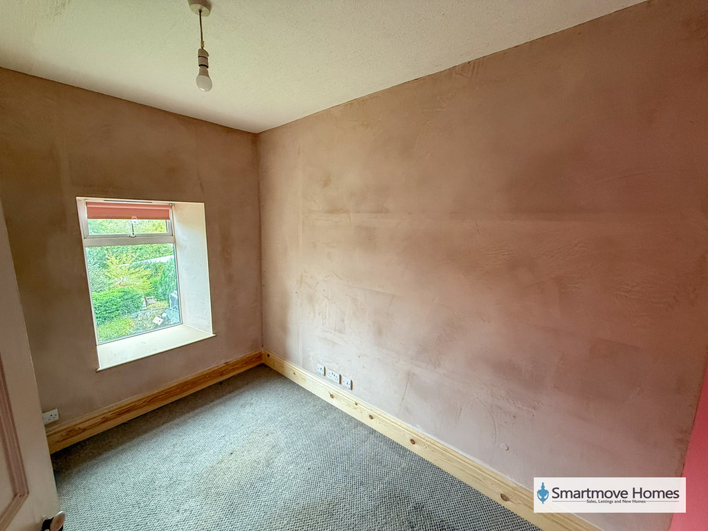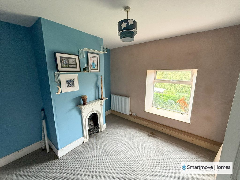 BEDROOM TWO Double bedroom with window to the rear elevation, thick chimney breast with an original cast iron feature fireplace and central heating radiator.
