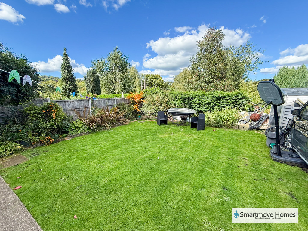 GARDEN Rear garden which is mainly laid lawn with planted borders and shrubs, outside lighting, outside water tap, raised decked seating area, outside storage and an outside WC.
