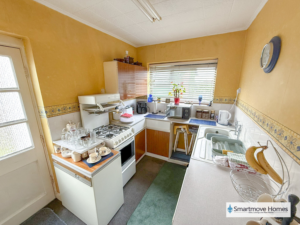 KITCHEN Fitted kitchen with matching wall and base units, sink and drainer, space for under counter fridge, space and connection for a gas cooker, space and plumbing for a washing machine. Window to rear elevation, door to side elevation and central heating radiator.