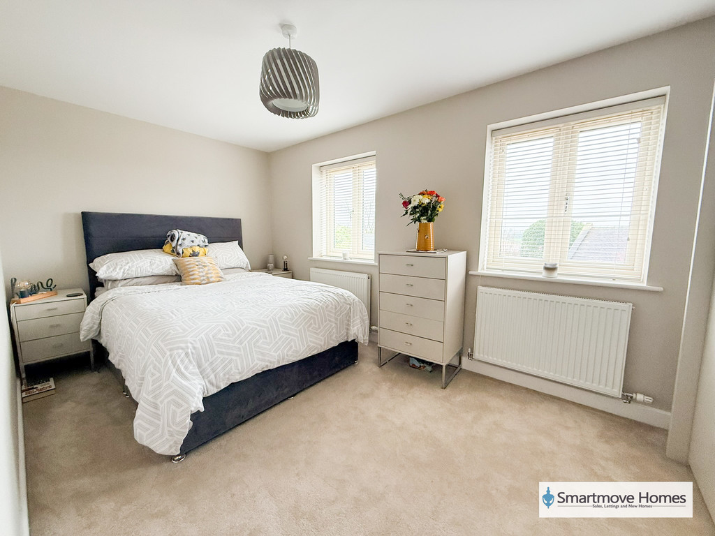 MASTER BEDROOM Large double bedroom with two windows to the rear elevation, two central heating radiators and space for large wardrobes.