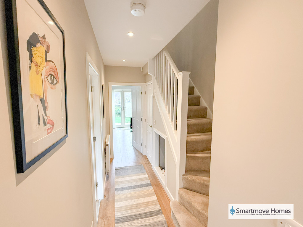 ENTRANCE HALLWAY Composite door to the front elevation, Engineered wood floor, central heating radiator, spotlights and stairs leading up to the first floor landing with under stairs storage.