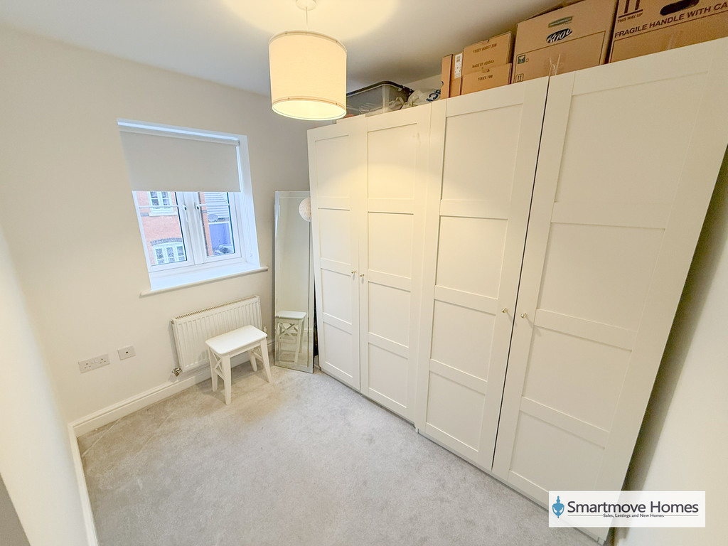 BEDROOM THREE Window to the front elevation, recess for a wardrobe and central heating radiator.