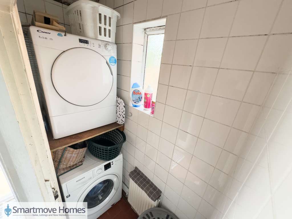 UTILITY AREA Space and plumbing for both washing machine and tumble dryer, lighting, power and has a window to the side elevation.