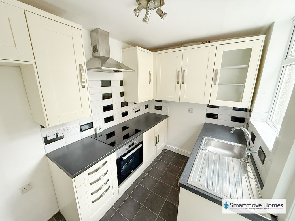 FITTED KITCHEN Modern fitted kitchen with matching wall and base units, worksurface with inset sink and drainer, inset ceramic hob, electric over with extractor fan over, space and plumbing for washing machine and space for a tall fridge freezer. Window and door to the side elevation, Vinyl floor, central heating radiator and Worcester Bosch boiler.