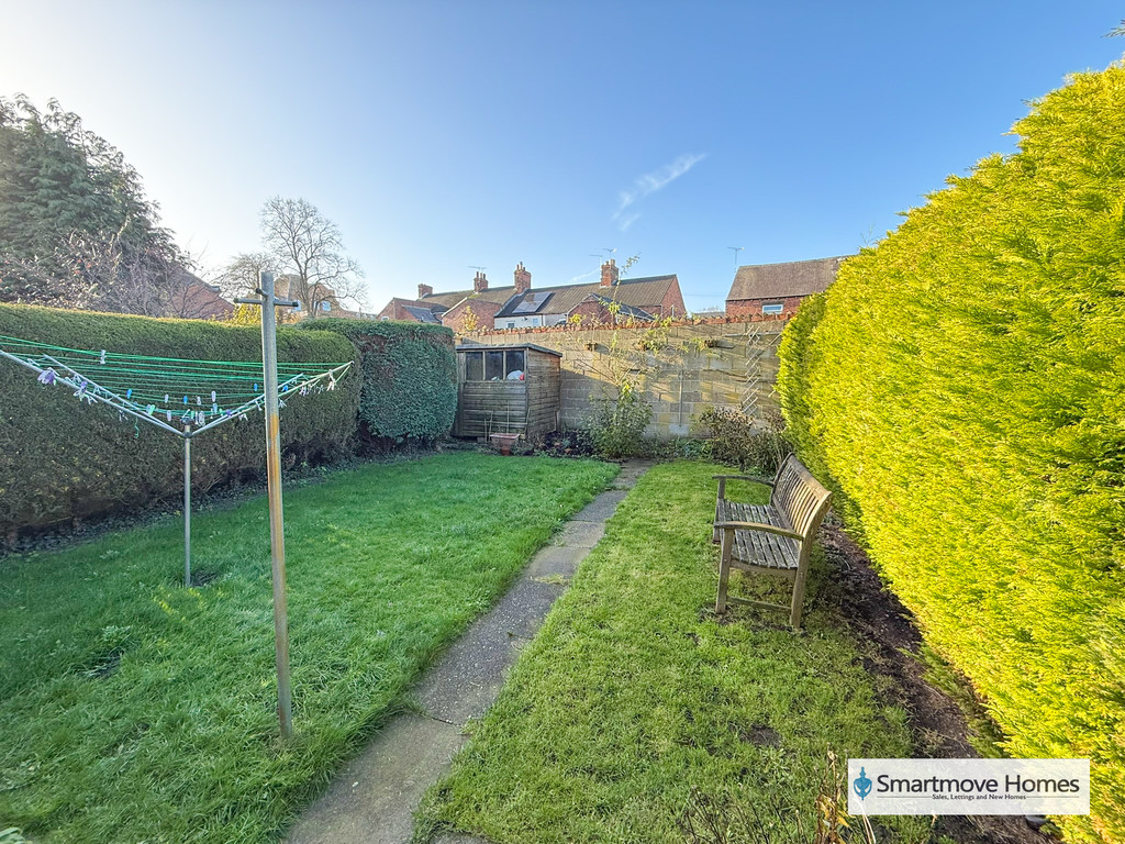ENCLOSED GARDEN Enclosed and private rear garden with laid lawn, patio seating area with pathway leading up to a wooden shed, planted borders, outside water tap and lighting.
