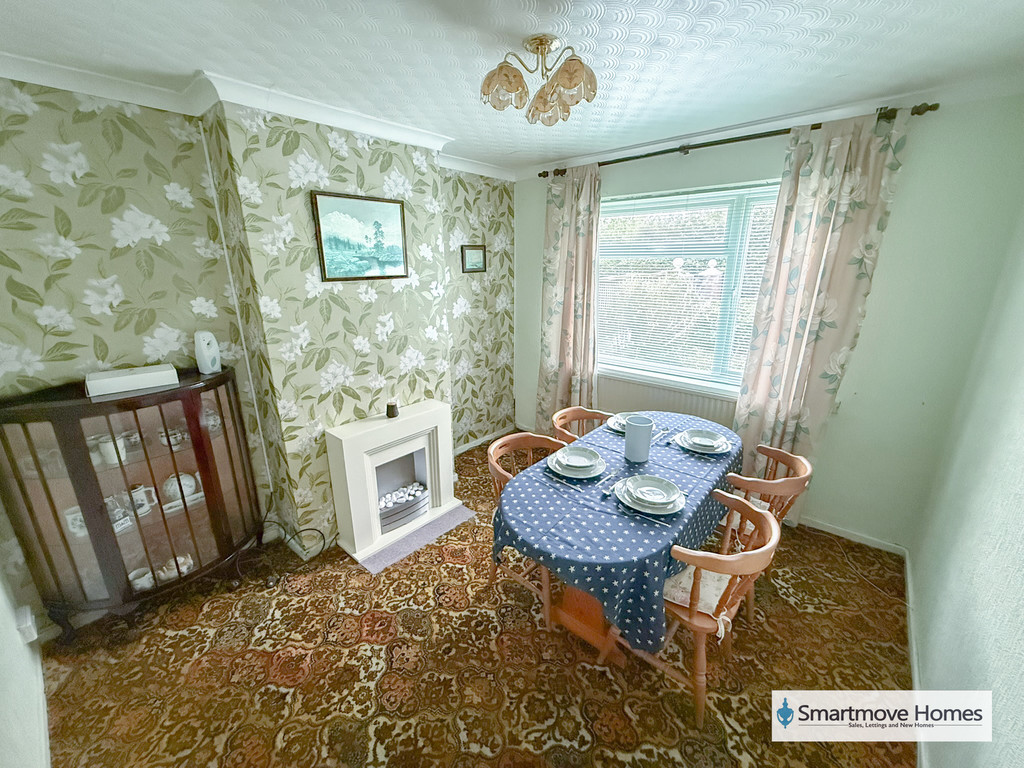 DINING ROOM Window to front elevation, electric feature fireplace and central heating radiator.
